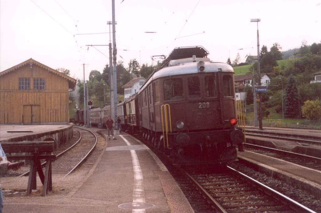 | ... Le samedi 12 juin, la traction des trains est assurée sur le Vallon par la Tigerli alors que la Krauss-Maffei se charge des prestations plus exigentes pour Neuchâtel, montant un impressionnant train tartare ... discrètement épaulée par l'Ae 6/8 208 ex BLS | ||