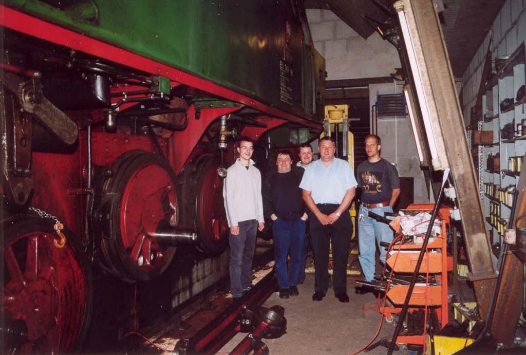 | Le dimanche soir, après avoir remisé les machines et soupé ensembles : photos de Steve Ryszka (le traducteur des pages en anglais, tout à droite des photos de droite) accompagné de quelques collègues de Peak-Rail en Angleterre, venus nous rendre visite 3 jours durant. | ||