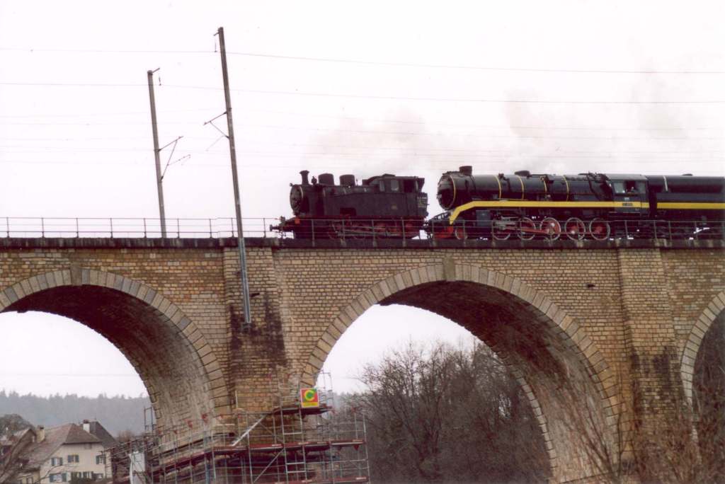Ces photos ont été prises lors de la première circulation de la saison, le 12 février 2005, à l'occasion d'un train assuré en double Traction avec DLM de Neuchâtel à Yverdon pour Trivapor