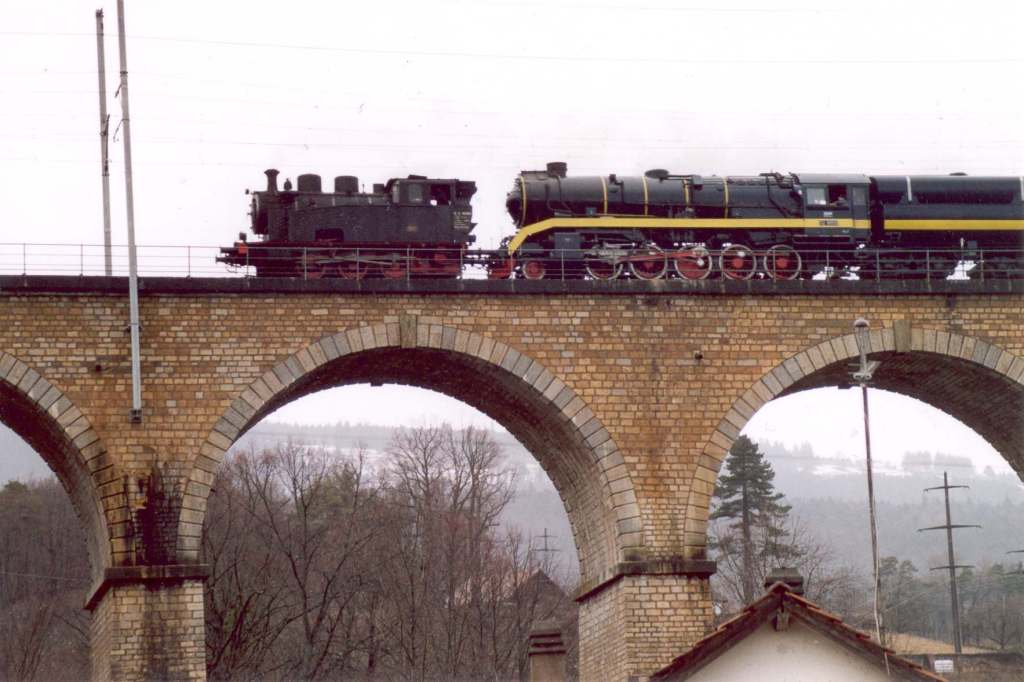 Le VVT n'assure qu'à de rares occasions des circulations hivernales en raison des contraintes d'exploitation et du temps à consacrer aux révisions. Cette année, une course exceptionnelle que nous ne pouvions pas refuser a permis à de nombreux ferrovipathes d'admirer les volutes de vapeur de la Krauss-Maffei dans le ciel de la saison froide ... quelques années après le train du Saint-Nicolas qu'avait assuré notre Tigerli. |