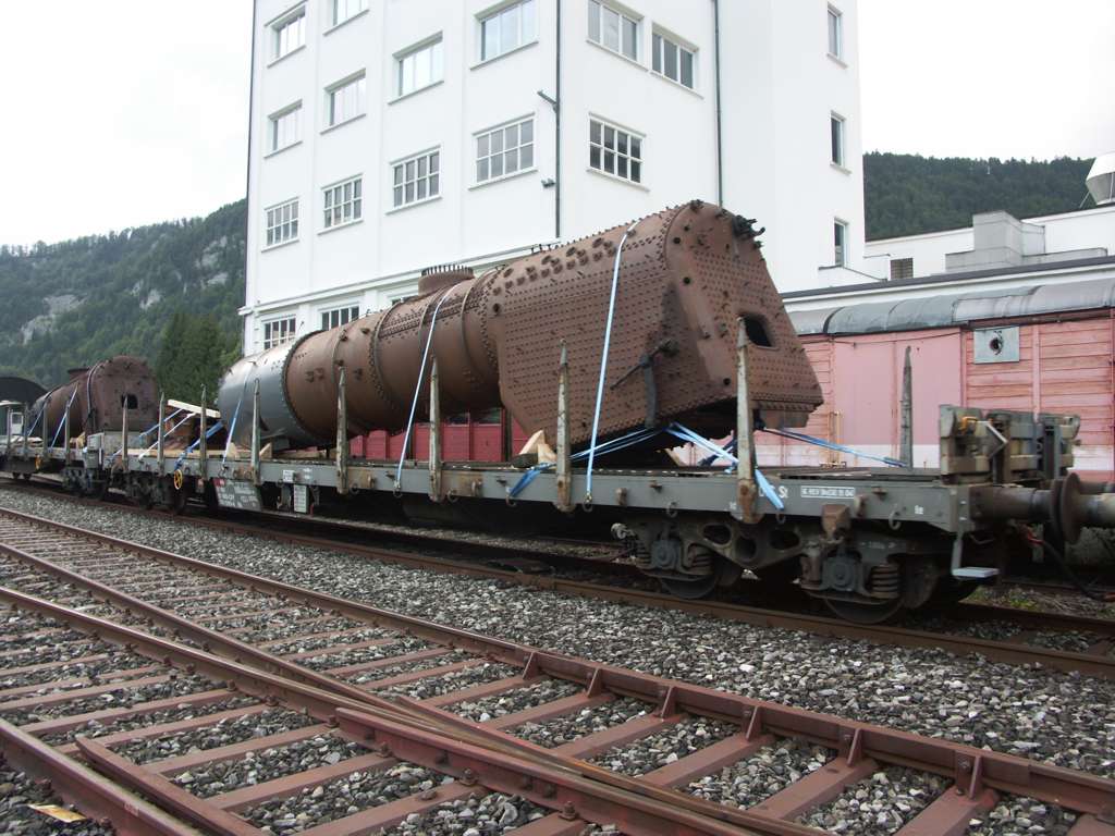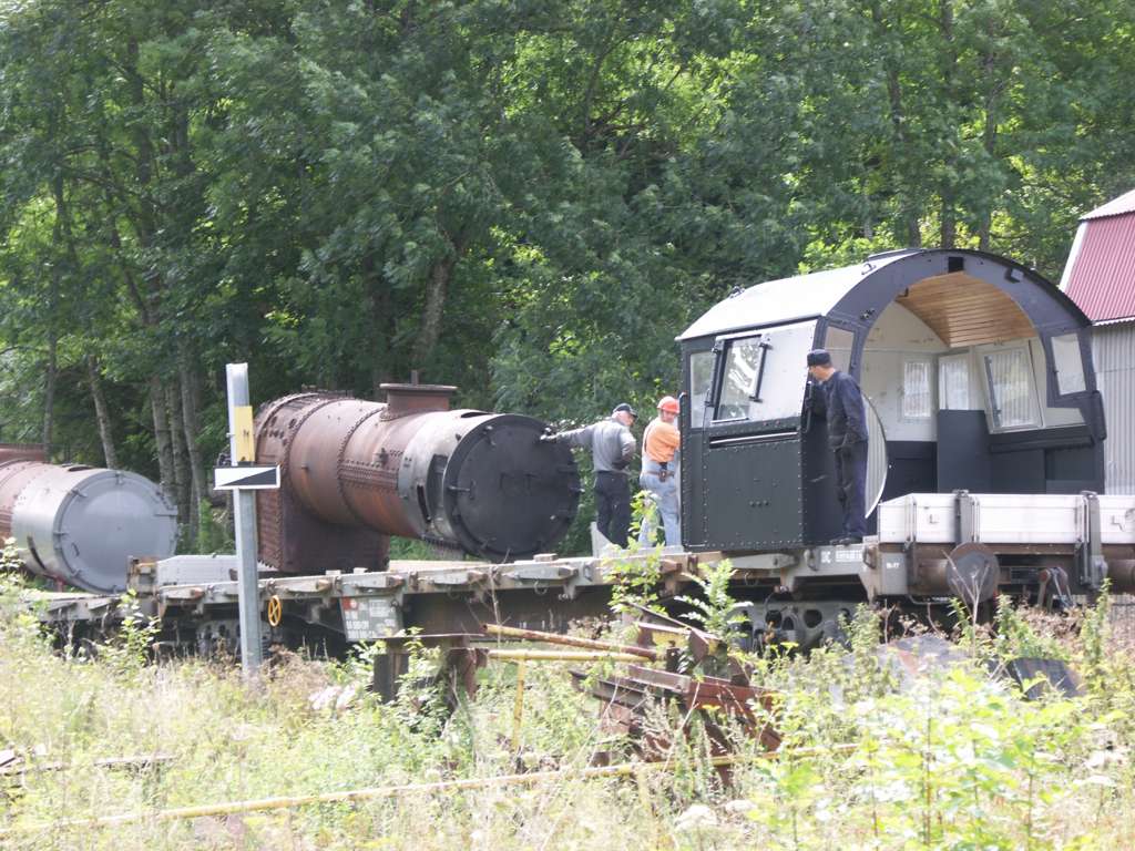 Chargement des pièces de la 52 221 et de la chaudière de la Slask pour les ateliers tchèques de Velenice |