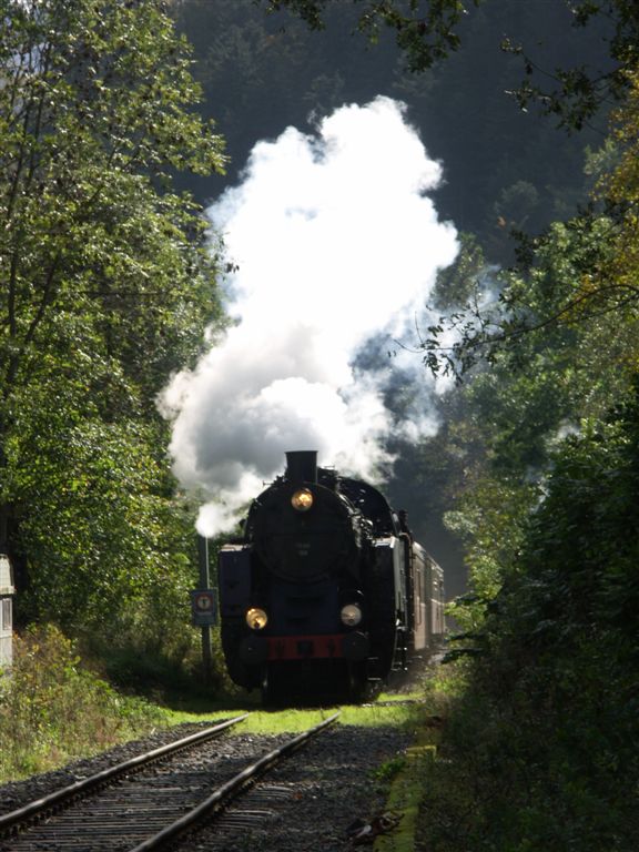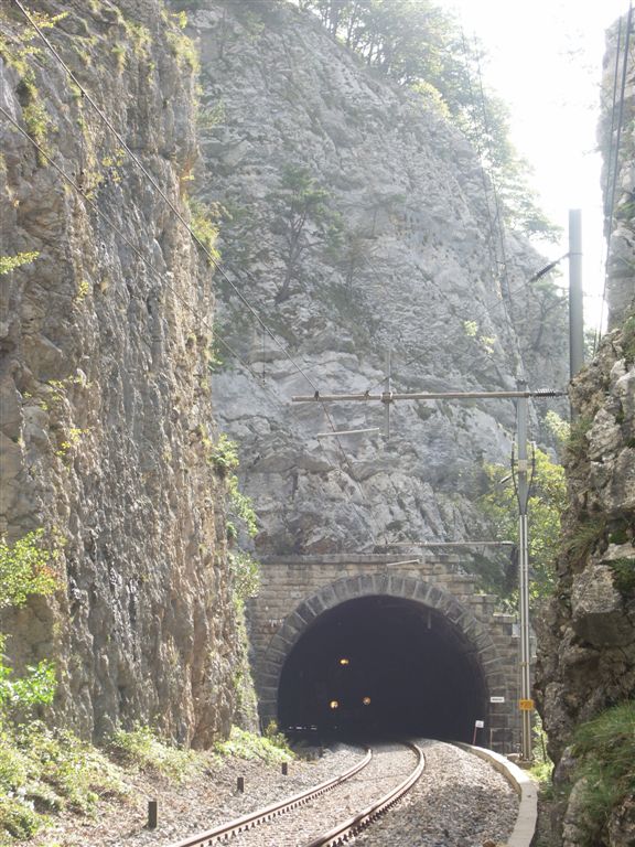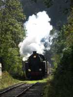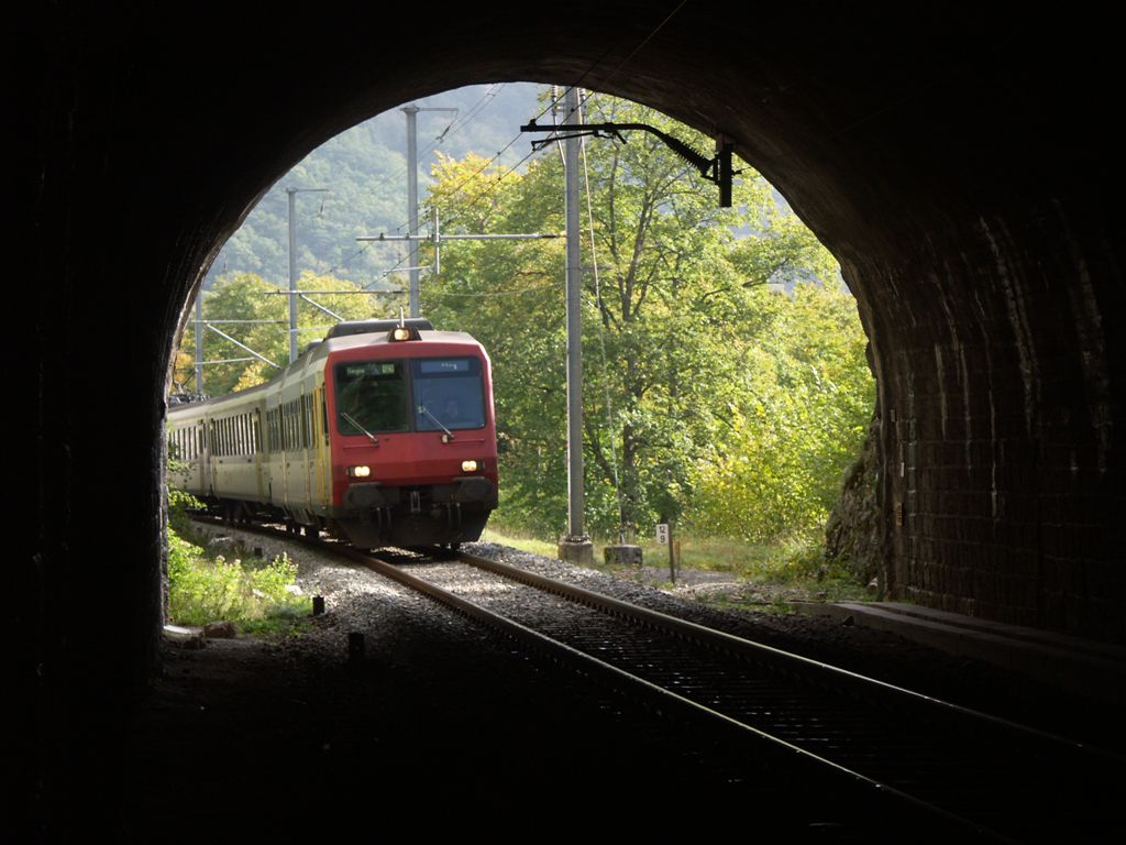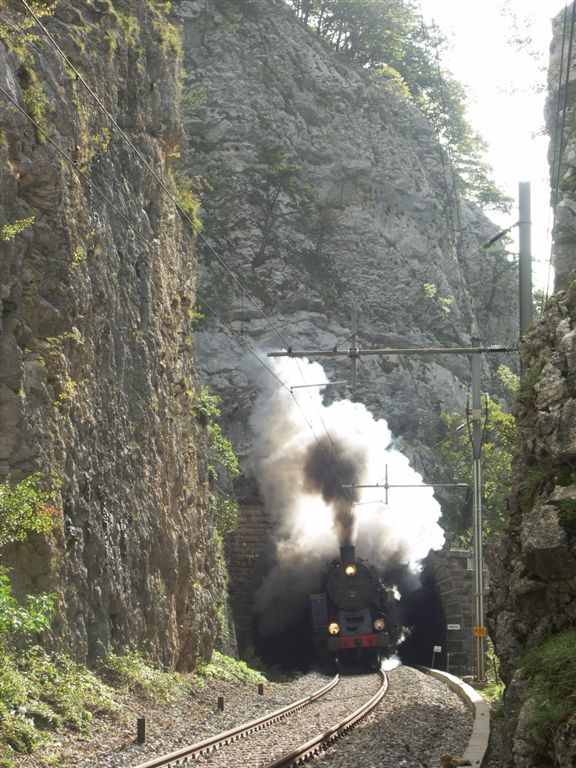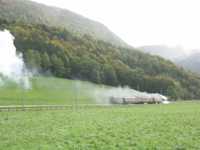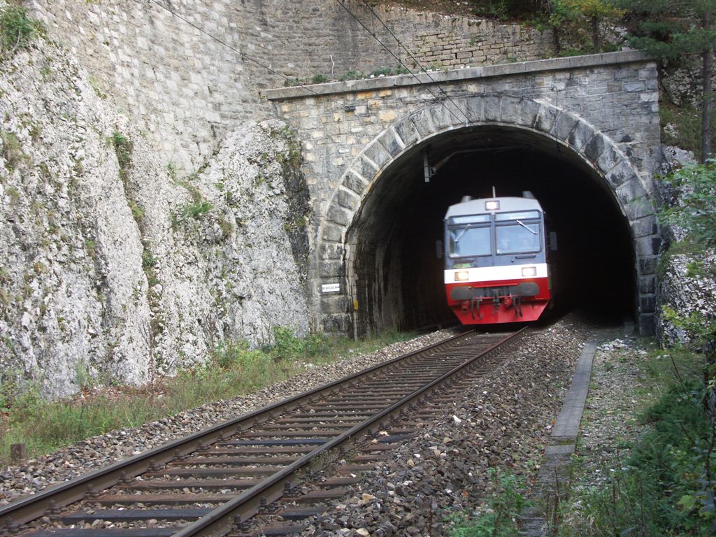 | Le revoici, surgissant d'un tunnel en rampe de 20 pour mille lors de la remontée des Gorges de l'Areuse... | ||