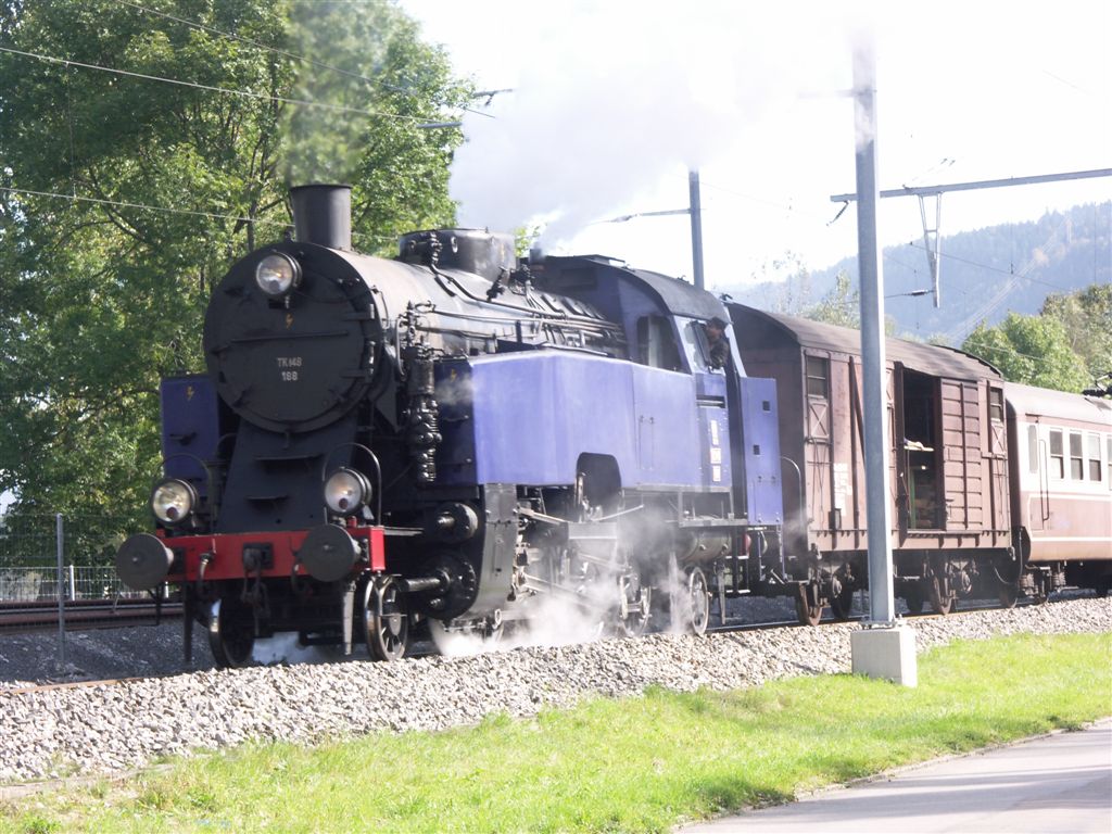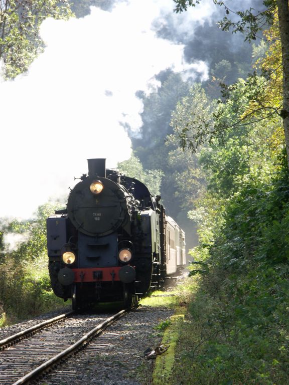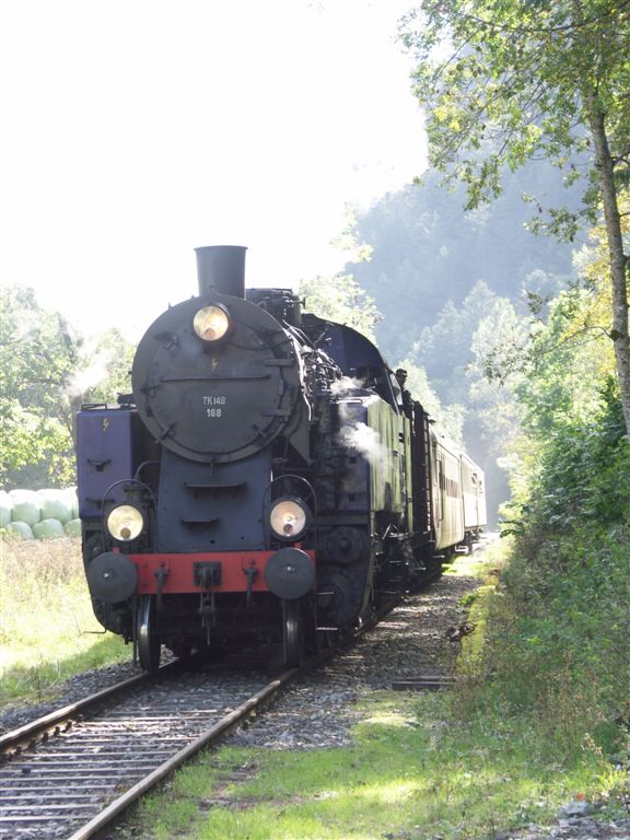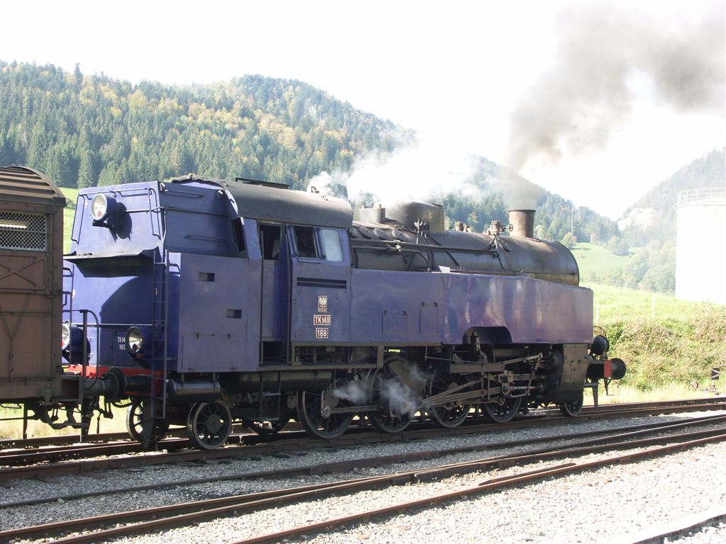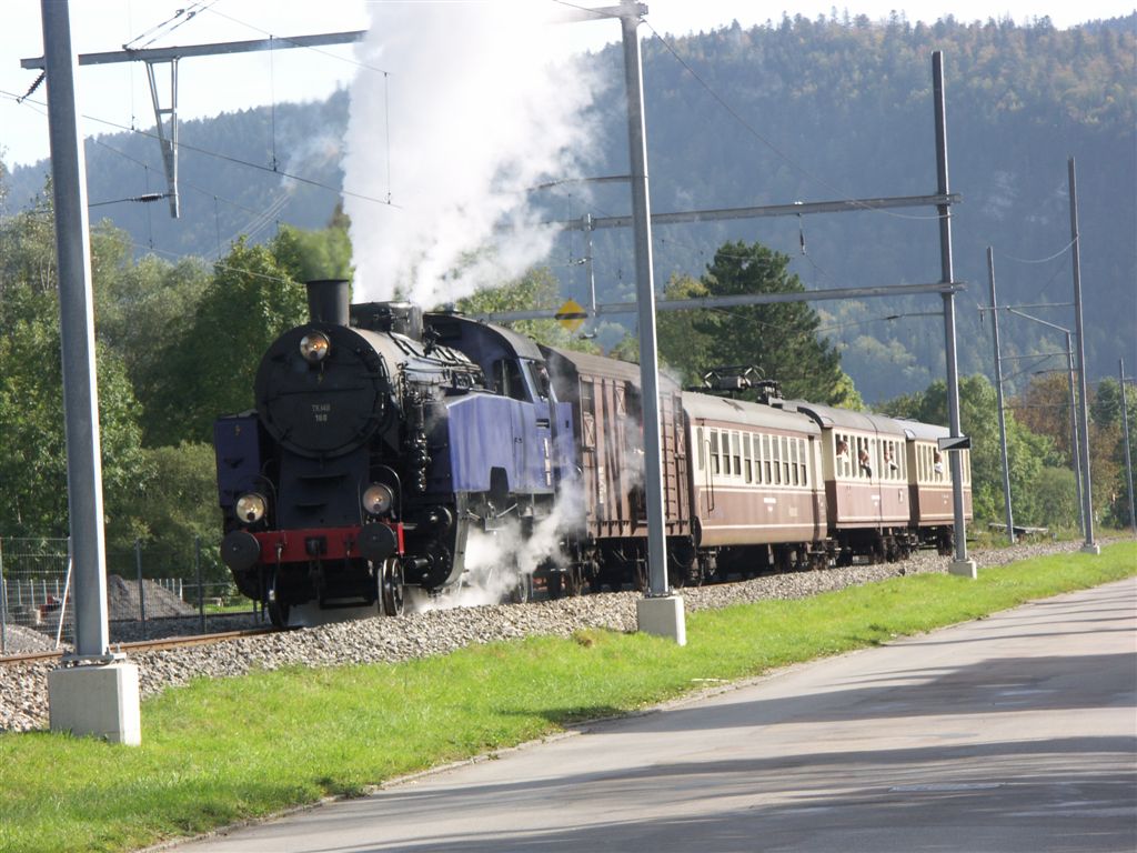 | le convoi tracté par la TKt48 188 s'en va chercher le soleil à Neuchâtel. | ||