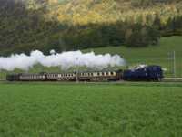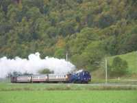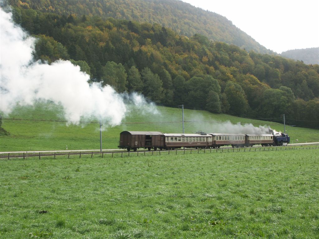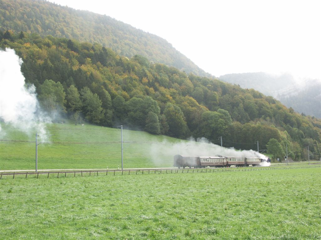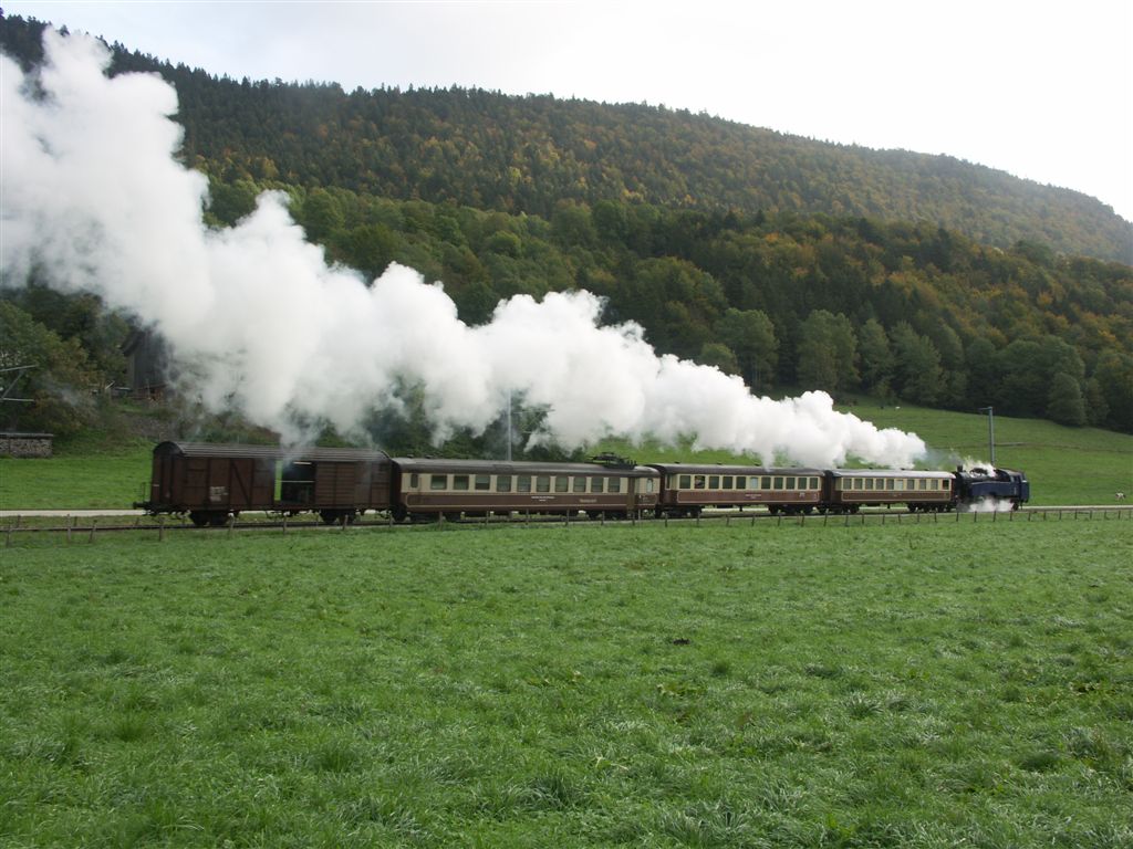 | Sur le plateau reliant Travers à Noiraigue, les premiers rayons du soleil caressent le convoi ... | ||