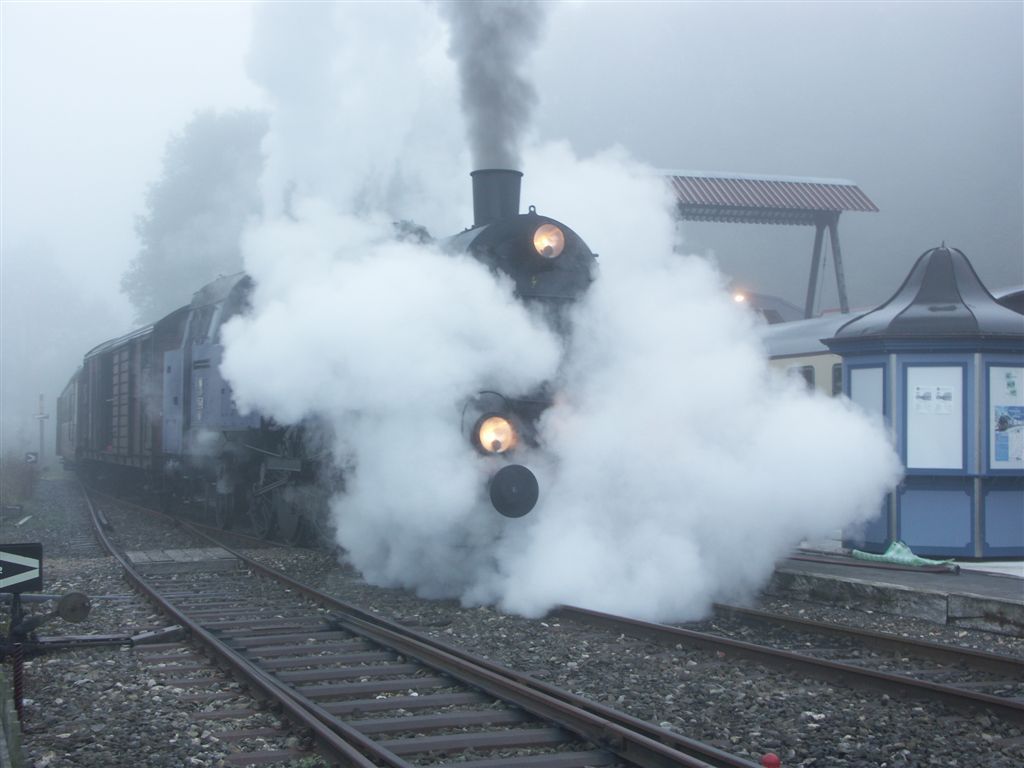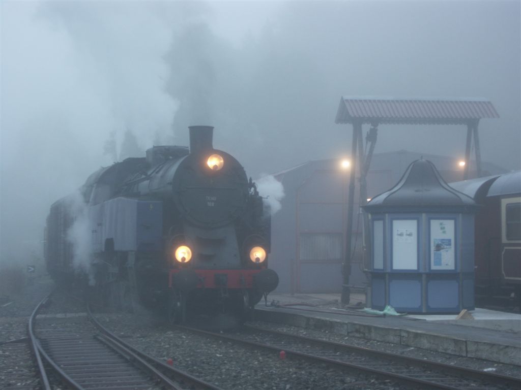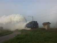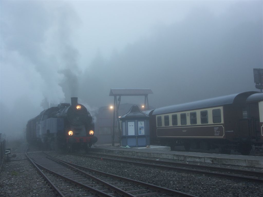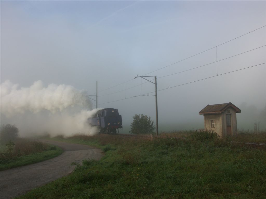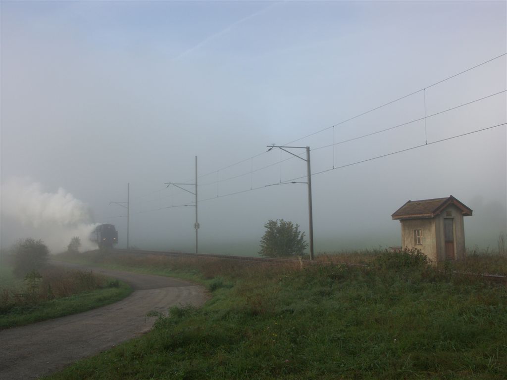 | Dimanche, après la préparation du train dans une ambiance fantasmagorique due à un léger brouillard, | ||