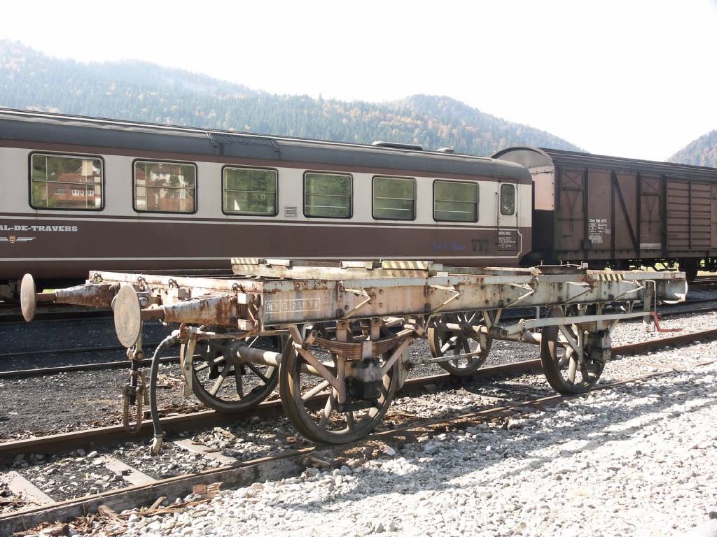 ... tandis que la E 3/3 ex JS 855 (puis CFF 8175, RVT 8, Von Roll 11) se prépare à rejoindre le dépôt de son nouveau propriétaire, accompagnée d'un ancien wagon de service RVT/TRN et du D4 371. |