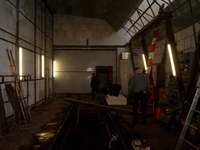 Wir montieren Türen zwischen Werkstatt und Depot View of the doors which isolate the metalwork shop from the pits and the unheated part of the depot.