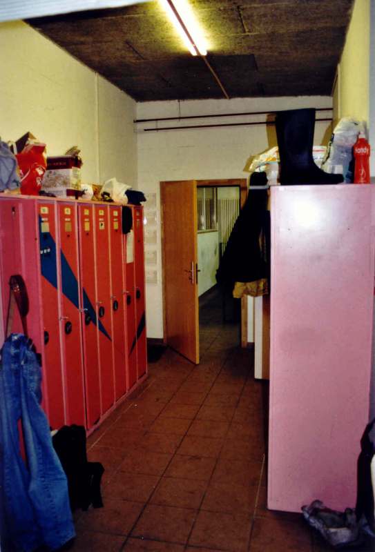 Du futur vestiaire, on aperçoit ici l'accès au bureau et aux douches Sie sind in der Zukünftige Umkleideraum und sehen die Büro- und Duschenzutritt. The future changing room, here can be seen the access to the office and the showers.