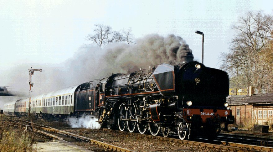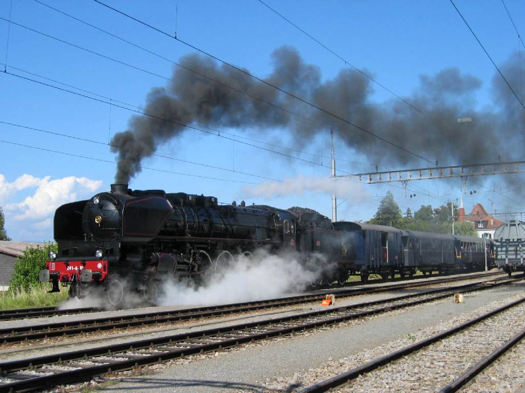 Der VVT konnte die ganze Revision nicht selber in St-Sulpice führen und suchte einen Sponsor. Einige Kesselarmaturen wurden revidiert. 1996 übernahm Herr Urs Wettstein die Maschine. Er lies im DB - Ausbesserungswerk Meiningen eine umfangreichen Totalrevision machen. Seit April 2000 steht diese Lokomotive in Burgdorf. Am 1. April 2003 schenkte Herr Wettstein die Maschine dem Verein 241-A-65. Die aktuelle Auskünfte über diese wunderschöne Maschine (die grösste betriebfähige Dampflokomotive in der Schweiz) werden sie auf http://www.241a65.ch finden. |