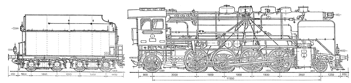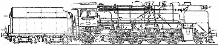 Freight locomotive with over heated steam and two cylinders. Modification : Oil heating, as supplement to coal heating |