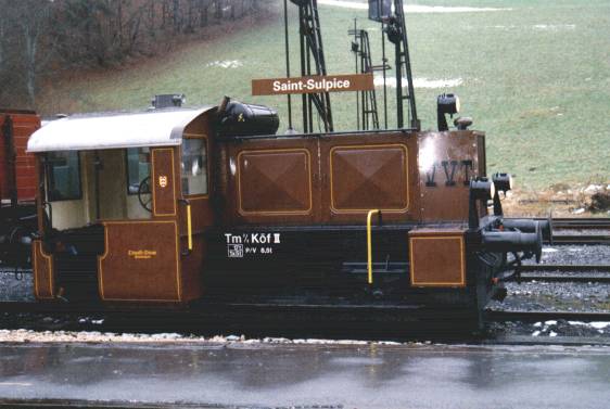 | __.04.1993 | VVT - Vapeur Val-de-Travers, St-Sulpice/NE (CH) Suiza designación : Tm 2/2 Köf II" |