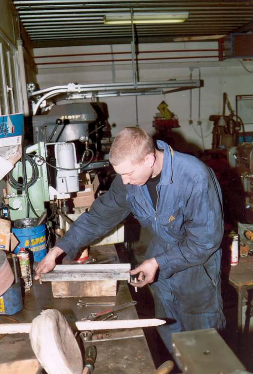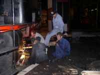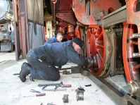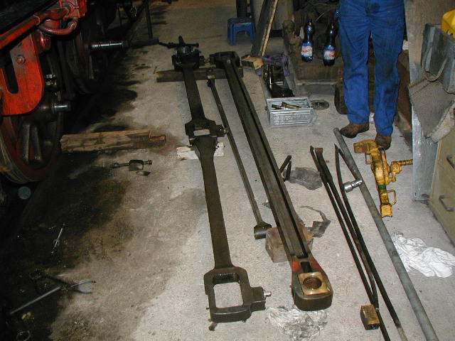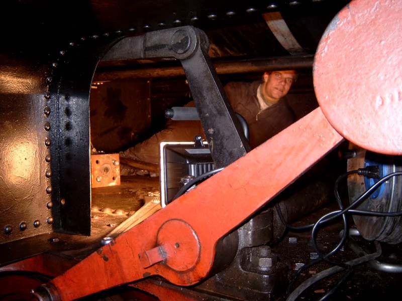 New bearings Démontage de la vanne d'extraction Suppression du jeu entre la crosse et la glissière droite Spiel zwischen Gleitbahn und Kreuzkopf wurde entfernt Removing play between the crosshead and the right hand slidebar Samedi 3 mai 2003, suppression du jeu dans les coussinets de bielles d'accouplement droite Samstag den 3. Mai 2003 ... nach diesen kleinen Unterhaltsarbeiten werden die Kuppelstangen nicht mehr klopfen. Saturday 3rd May 2003, removing play in the right hand coupling rod bearings Construction d'une rehausse à charbon garantissant une autonomie suffisante pour St-Sulpice - Neuchâtel et retour Kohlevorrat wird erhöht Extending the bunker to allow sufficient coal capacity to run St-Sulpice to Neuchâtel and return without refuelling. Samedi 10 mai 2003, une fois les circulations de la journée terminées, derniers réglages de l'embiellage après réparation Saturday 10th May 2003, after the day's running has ended, last adjustments to the motion after repairs La rehausse de soute à charbon est maintenant installée Erste Fahrt mit grösserem Kohlevorrat The extended bunker at the fist time used http://www.voisin.ch/vvt/ : 17.06.2006 |