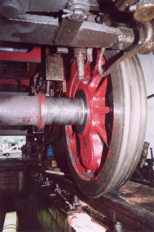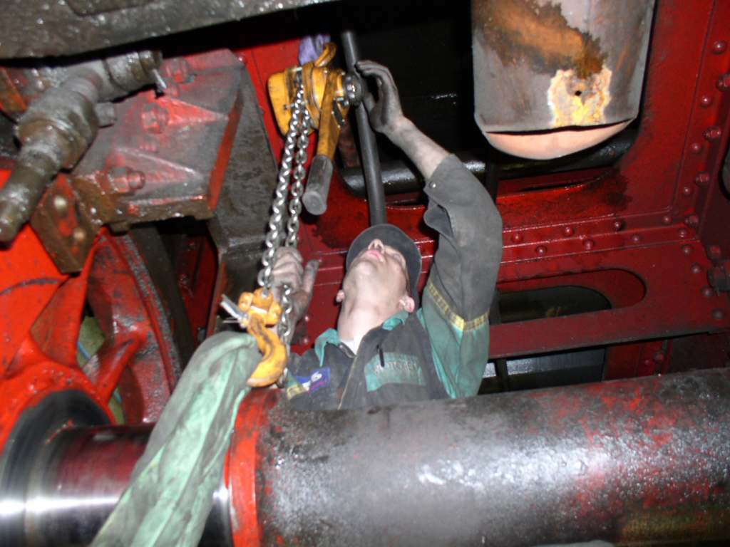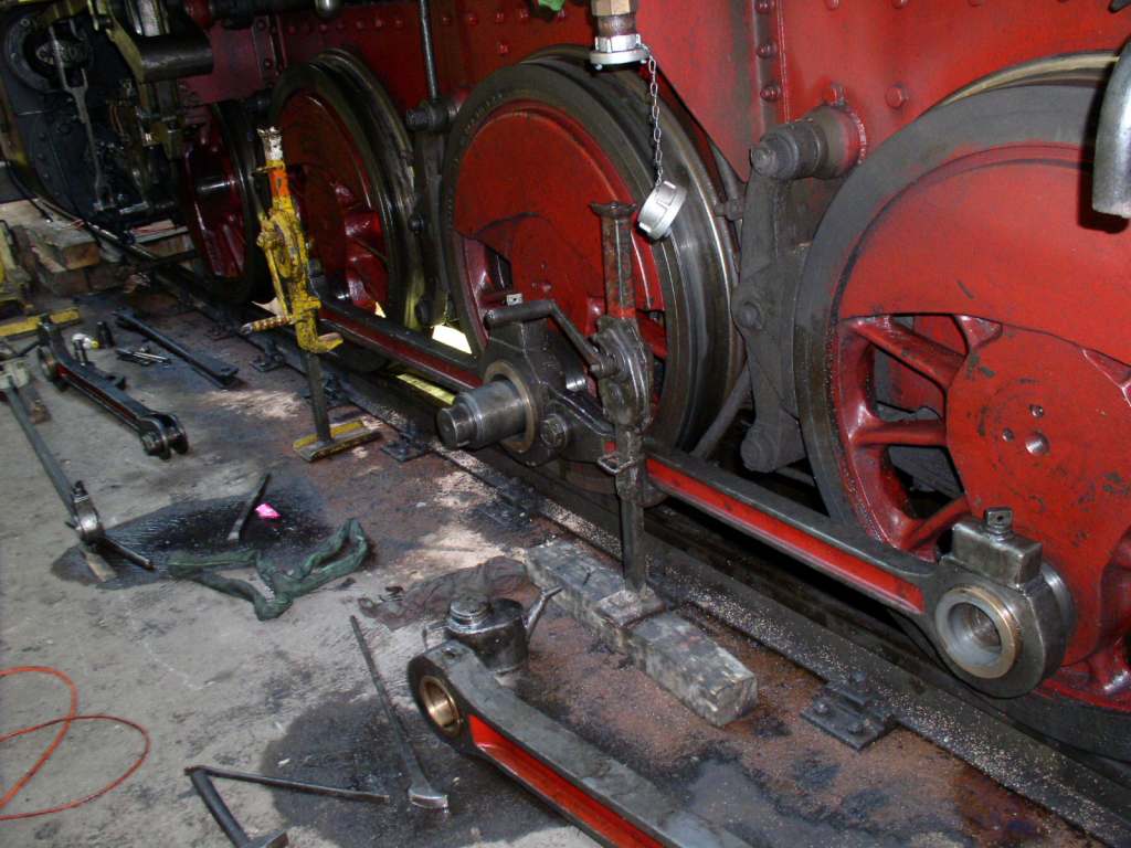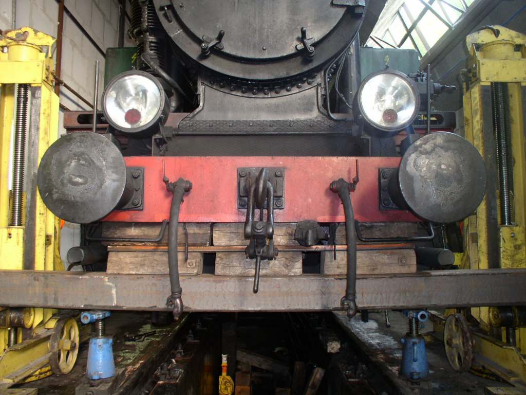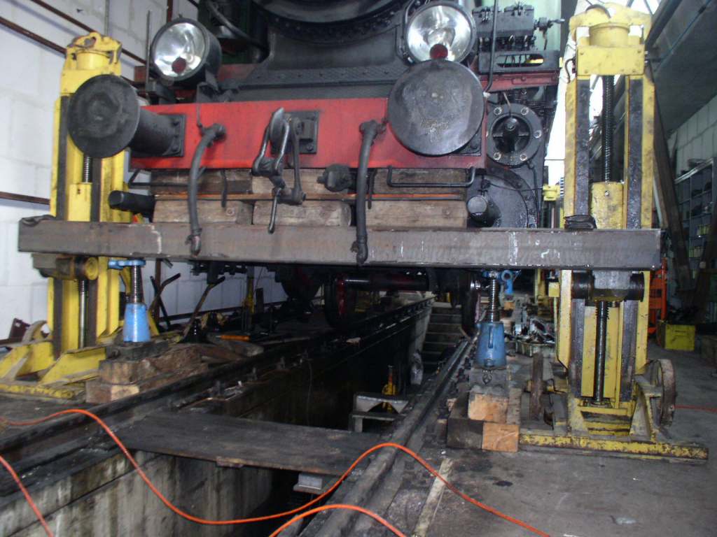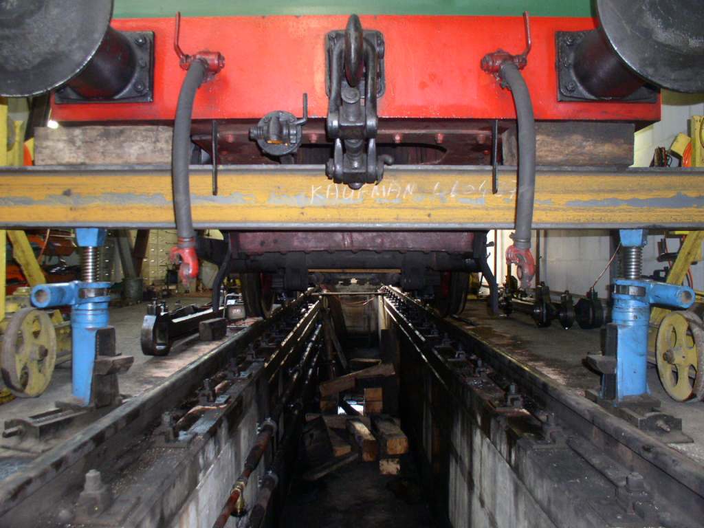 Levage de la locomotive pour démonter et réviser la boîte d'essieu du 2e essieu, à droite dans le sens de marche