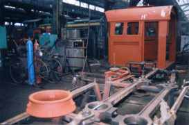C'est à ceci que la cabine achevée ressemblait avant la touche de peinture finaleLes caisses à eau latérales de la locomotive ont été prolongées jusqu'à la cabine pour des raisons esthétiques. A cette occasion, la porte qui se trouve normalement à gauche de la cabine pour accéder au tablier a disparu.